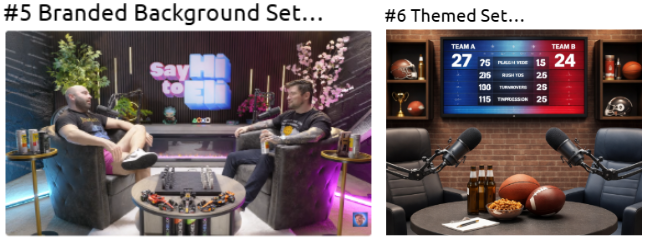 - Good set design also creates a mood using lighting, colors, and background items. This helps support the topic or brand of the podcast.